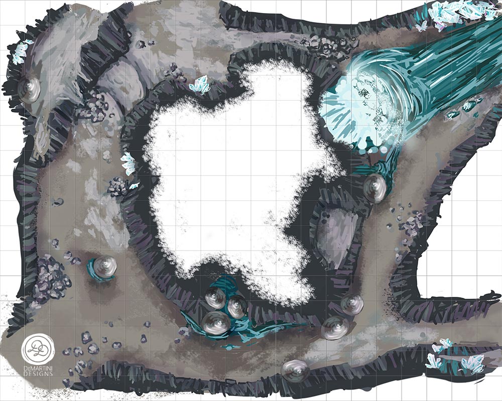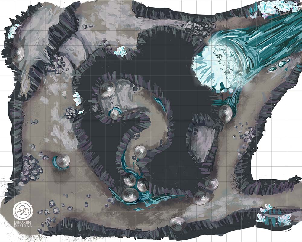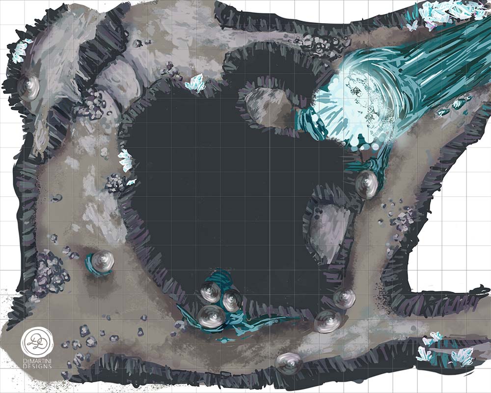 Caves of Miriya - Waterfall 20x16, TWO LEVELS Secret rooms, large water hazards, and hints as to what may lie deeper within. Hidden Rooms Large Room Reveal Behind waterfall refeal All rooms revealed Details Map Size 20 x 16 units Map Versions Hidden Rooms Large Cavern Reveal Behind Waterfall Reveal Both Caverns Revealed All maps come with gridded and gridless versions. Where to Find this Map Patreon - Dungeon Delver Patreon - Scout More Like This Waterfall Cave Dungeon, Terrain Spiraling Dungeon Dungeon Brazier Lock Dungeon Skip back to main navigation