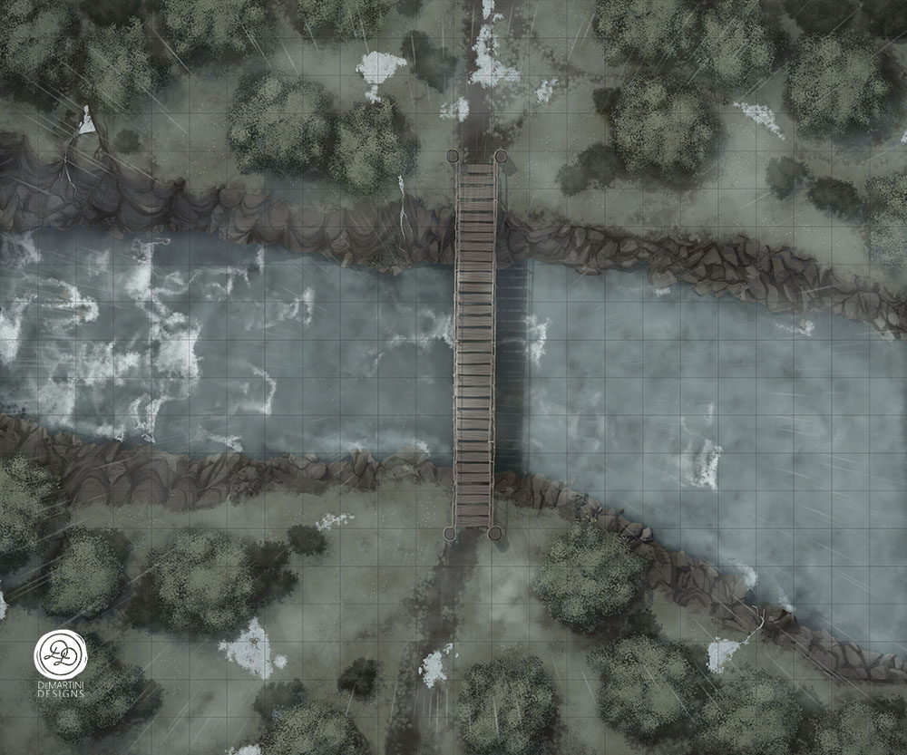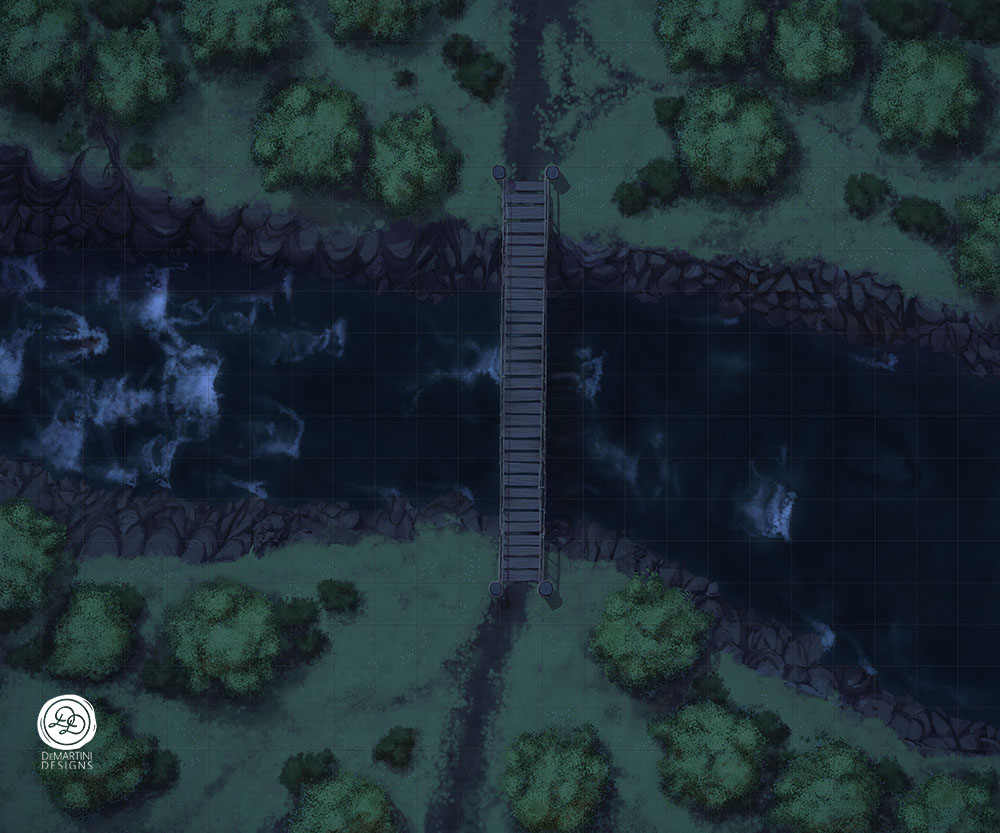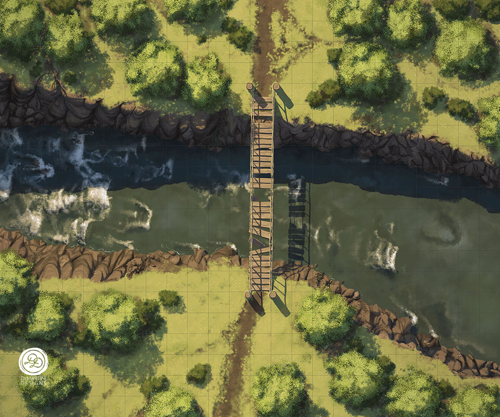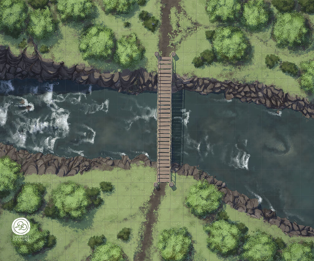 Another classic scenario: crossing a rope bridge over a rushing river. If the bridge doesn't seem trustworthy, the water may be passable upstream where it looks calmer, but a wrong step could also send you down towards the beginnings of rapids.