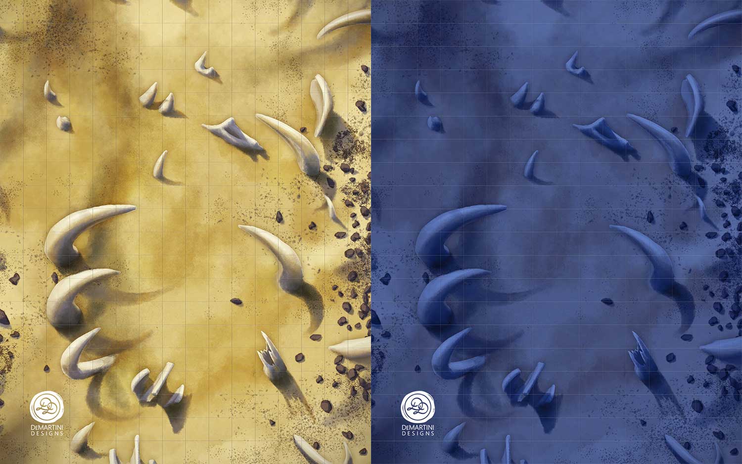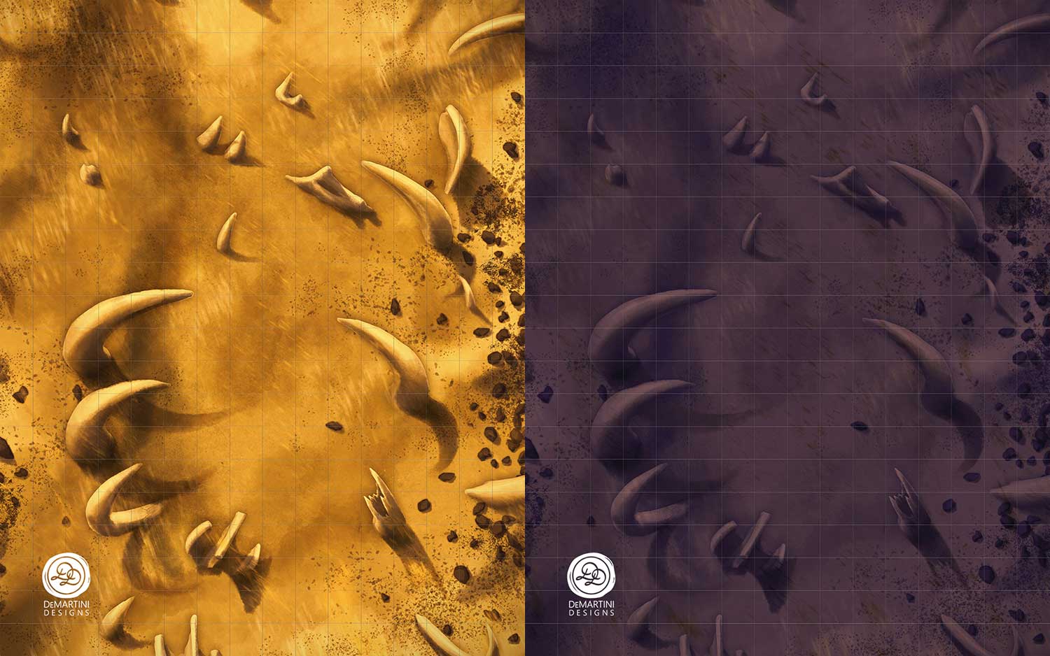 A memorable monument for a random encounter or ambush at the site of a plot's lead, large bones in the desert are a versatile visual.