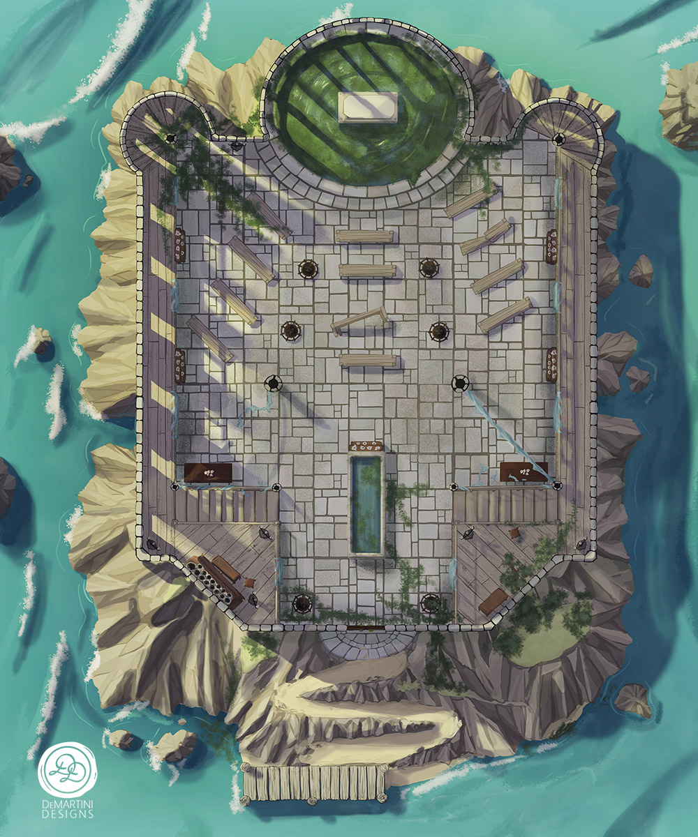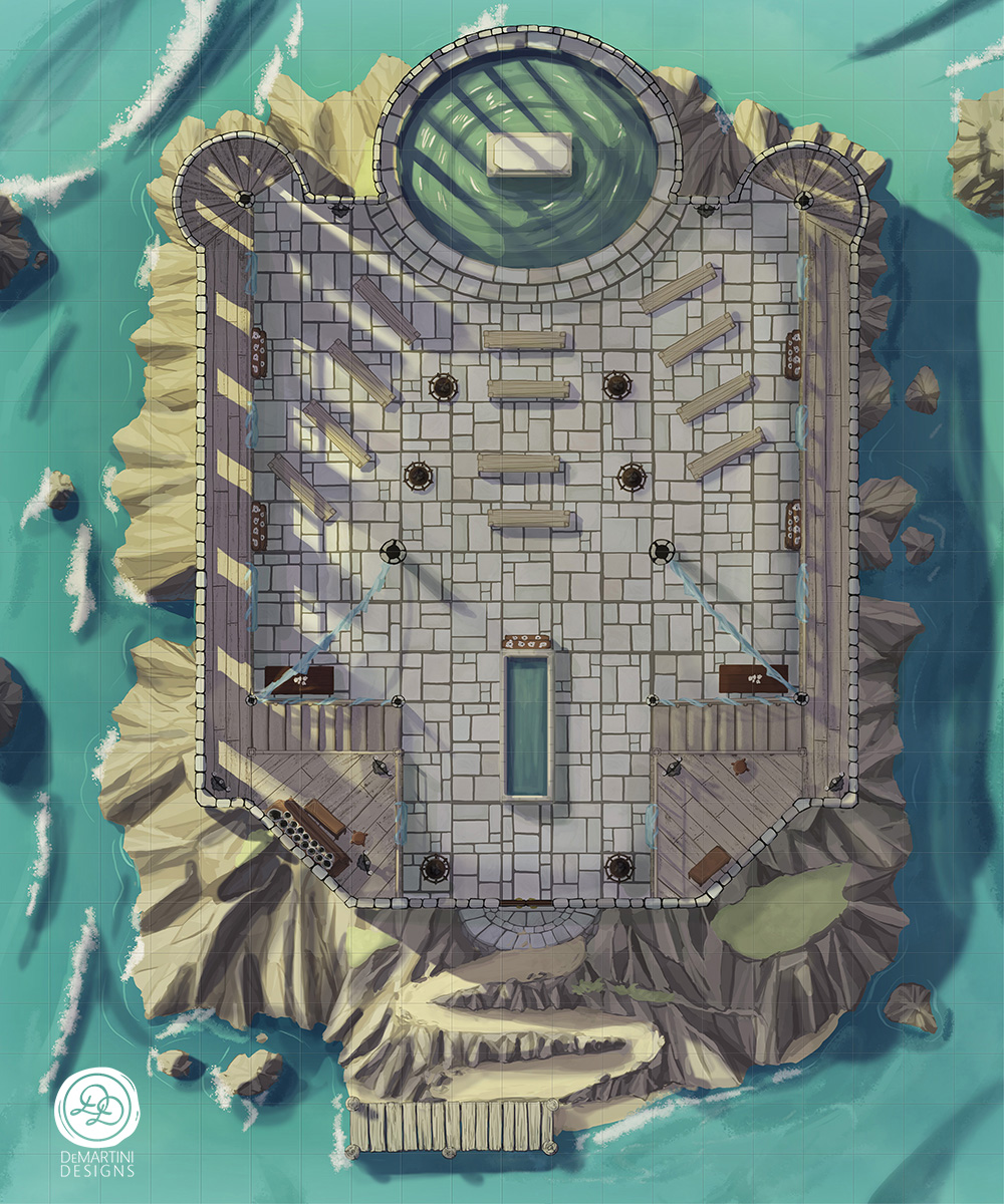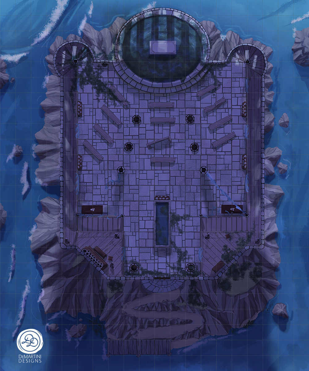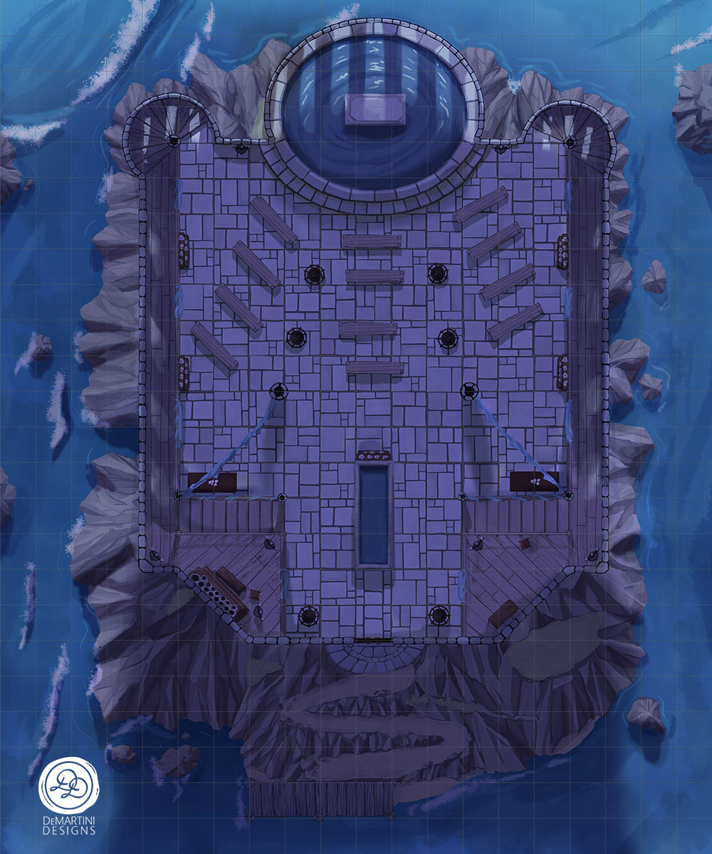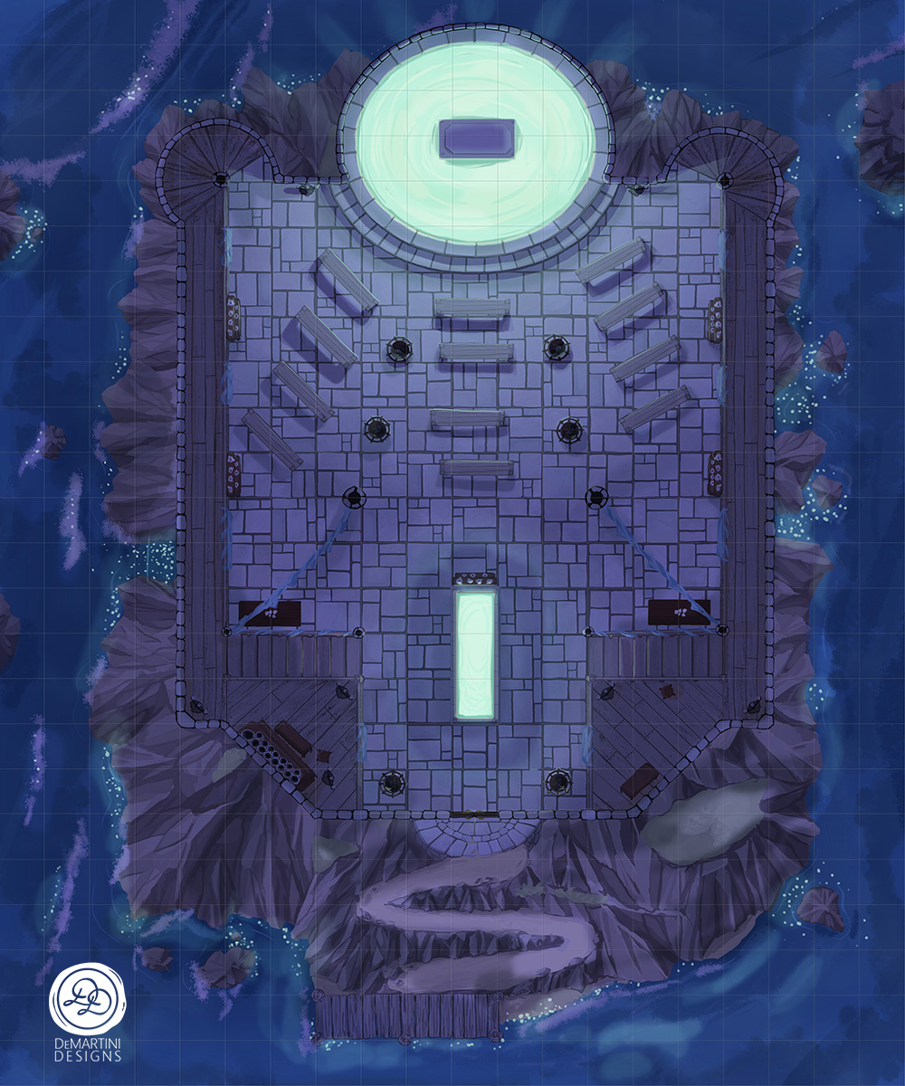 Ocean Island Temple 20x24 A tall temple is built upon a tiny, rocky island sits alone in the ocean. Day Night, Glow Night, Lit Braizers Overgrown, Day Overgrown, Night Details Map Size 20 x 24 units Map Versions Day Night, Glowing Water Night, Lit Braizers Night, Unlit Braizers Overgrown Day Night All maps come with gridded and gridless versions. Where to Find this Map Roll20 Marketplace Patreon - Reality Bender Patreon - Dungeon Delver Patreon - Scout More Like This Tiny Sloop Vehicle Beachy Shores Terrain Pillar Coast Terrain Skip back to main navigation