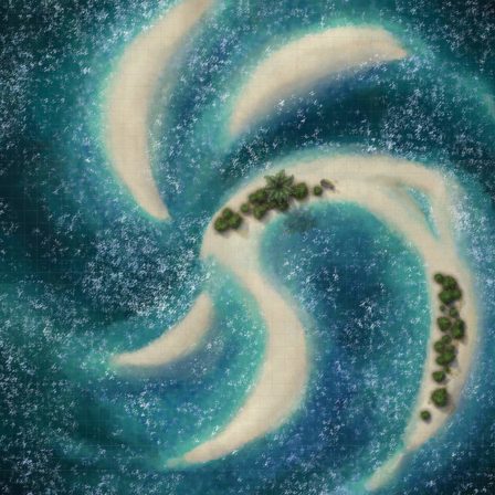 The water splashes against rocky islands that support sturdy towers of salt-worn wood. These towers connect above the waves with bridges of salvaged rope and chain, rattling in the windy inhales and exhales of the cove.