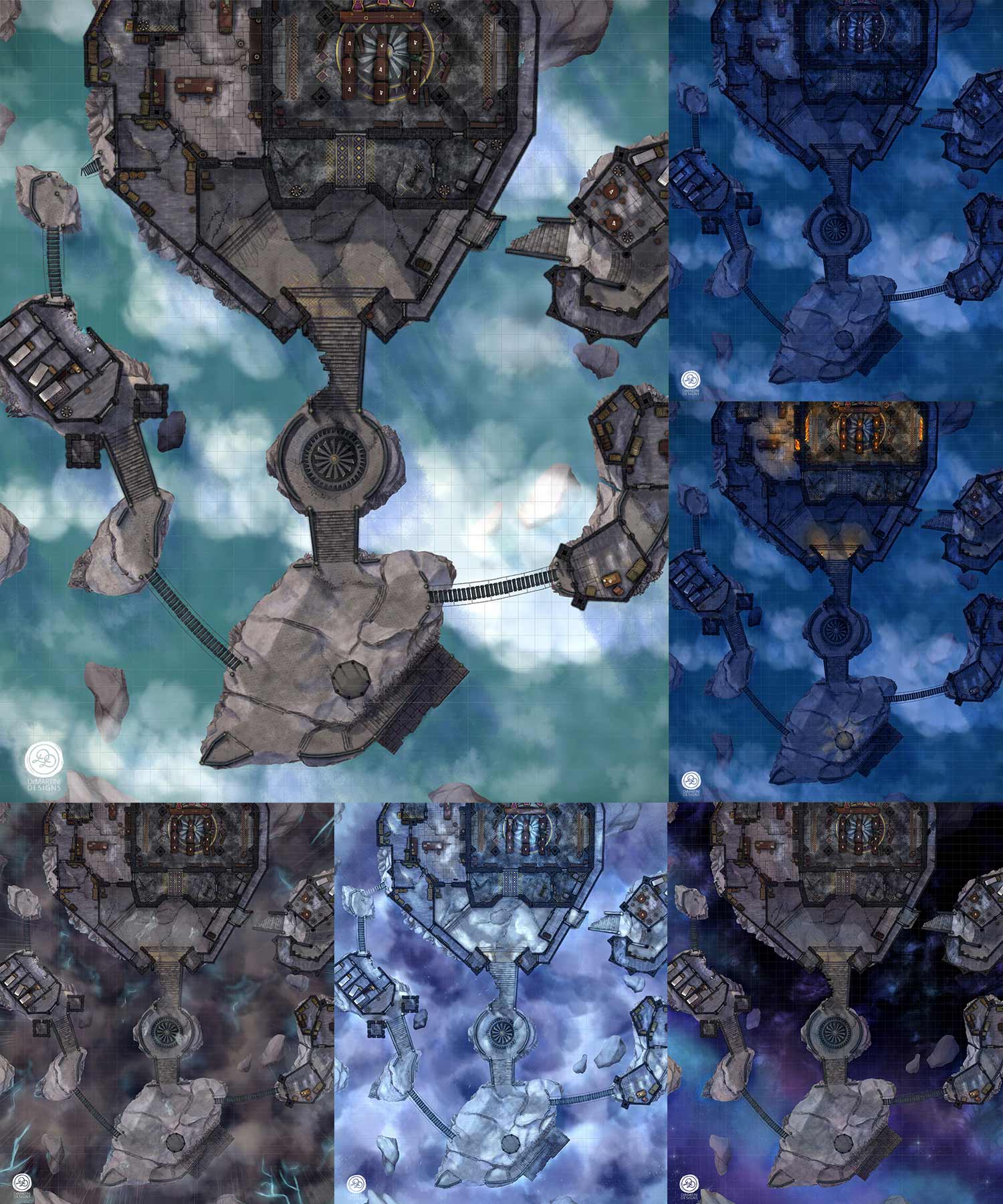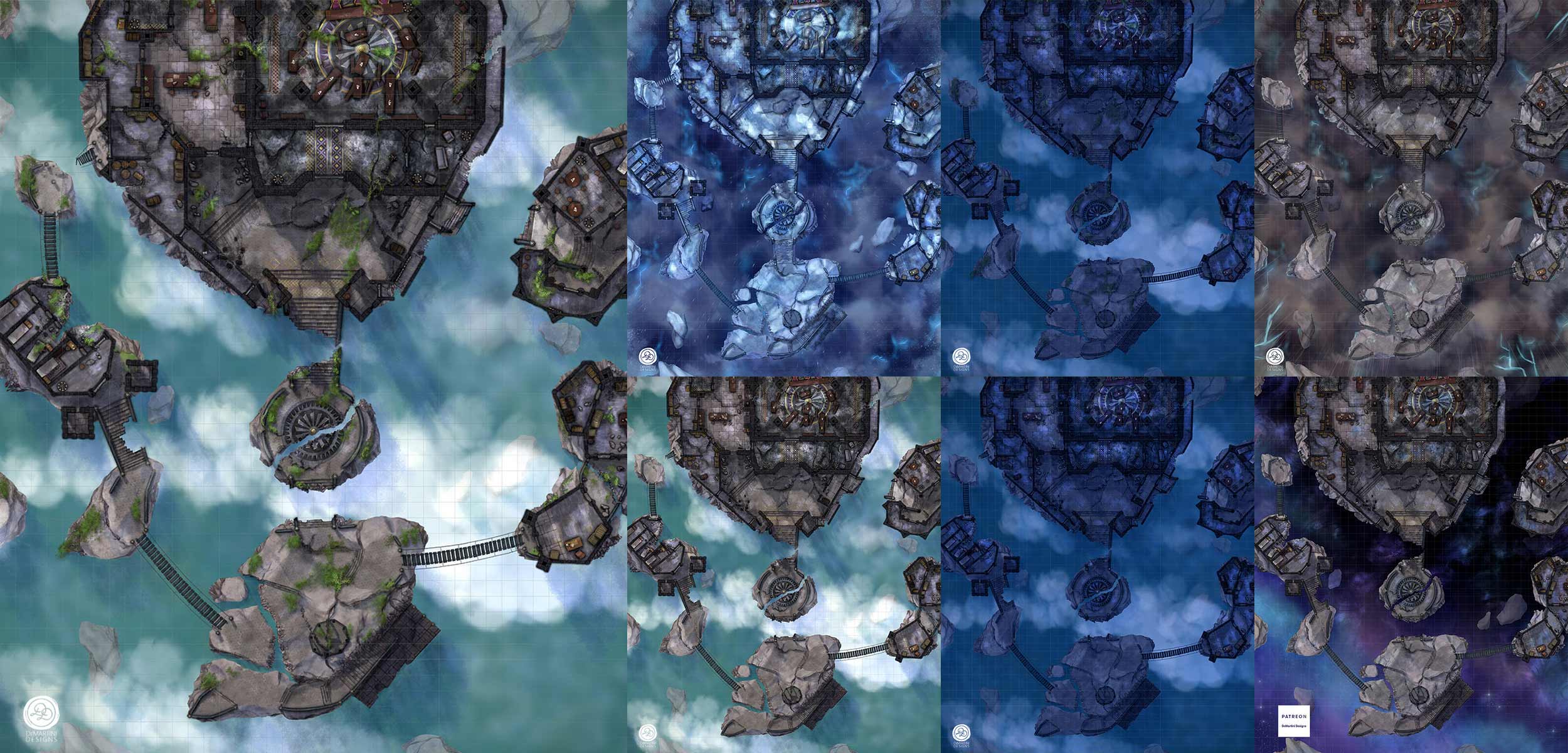 - Day, Overgrown Day, Night, Overgrown Night, Storm, Ice