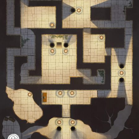 Challenge ideas include starting with no bridge and moving the magical flame from the outer braziers to the inner ones for the bridge to appear, via swapping maps.
